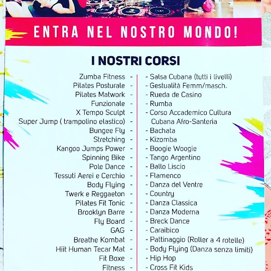 Esperienza fantastica: Non cambierei questa scuola per niente al mondo! Ci sono dei corsi super!!! Corsi che non si trovano altrove, come: Bungee fly, super Jump, circuito tessuti aerei, body Flying(con amaca), pole dance, board...e tanti tantissimi altri, oltre ai corsi di fitness sono presenti anche quelli di ballo. Sono tutti bellissimi e tutti da provare! Il personale è veramente di alto livello, Ogni volta che esco da lì sono sempre carica di energia positiva! Un Grazie enorme va al maestro Alex e a Monica sempre disponibili in tutto e x tutto, è come avere una seconda famiglia! Grazie mille! Siete fantastici... ❤️ Non cambierei questa scuola per niente al mondo! Ci sono dei corsi super!!! Corsi che non si trovano altrove, come: Bungee fly, super Jump, circuito tessuti aerei, body Flying(con amaca), pole dance, board...e tanti tantissimi altri, oltre …