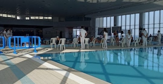 Esperienza positiva: Centro sportivo ben curato. Peccato per gli spalti inadeguati a delle manifestazioni natatorie a livello regionale. Bar caro per un centro sportivo (cocacola da portare 2€, pasto 10€, ....). Parcheggio in struttura). Signora addetta a phon e docce nello spogliatoio un po' troppo presuntuosa, dovrebbe limitarsi a fare il suo lavoro invece di contestare quanti scatti per phon o docce uno voglia acquistare.